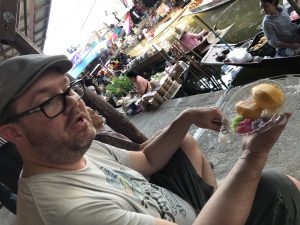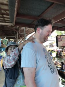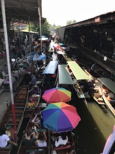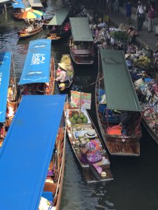 If your picturing the floating market in that you get to buy items off boats, there is some of that, but really it is a large market area next to the canals that were built. It is all about bargaining, which we aren’t the best at. At one artists booth, we didn’t even try to negotiate the price, as his paintings were so beautiful, they were worth the price.