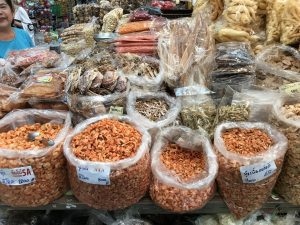 - Durian. It stinks. Don’t let them tell you any different. While walking through the markets, Pin has us try some. It tastes like sulfur. We asked what they use it for or why they eat it! Apparently they use it in soups and cooking. Hubby thinks it is all a trick to get tourists to eat it! We did buy some dried durian to bring home for M, who wanted some to put in Kim’s lunch box as a prank. What M doesn’t realize is that I’m going to make him eat some first!!!